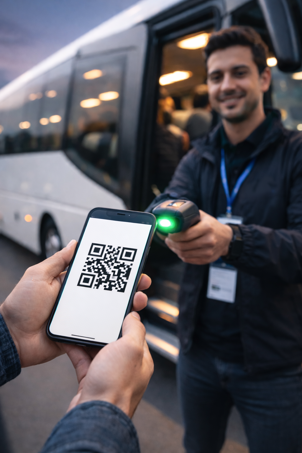Zonas con precios diferentes, paradas y organización por recorrido, pasajero por unidad (exportable), control de abordaje por QR.